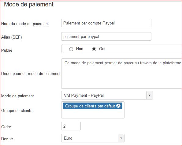 Je viens enfin de trouver la raison du message sur l'absence de mode de paiement sélectionné. Cela venait du fait que j'avais sélectionné France dans les pays afin d'éviter de rechercher le pays dans la liste déroulante de Paypal.