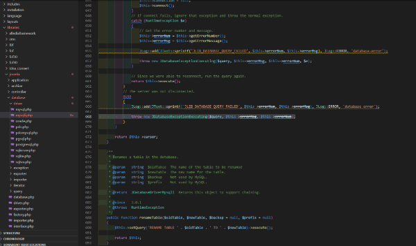 Sur ligne 668 de la page libraries/joomla/database/driver/mysqli.php