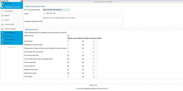 - j'ai bien activé l'affichage des prix dans la config générale et dans les groupes clients