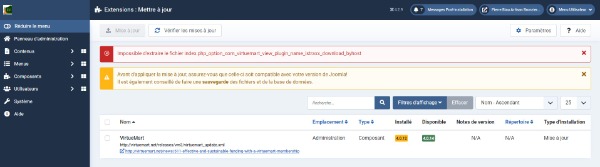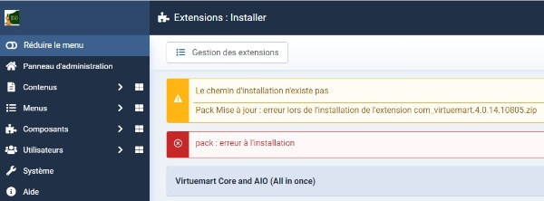 "Le chemin d'installation n'existe pas / Pack Mise à jour : erreur lors de l'installation de l'extension com_virtuemart.4.0.14.10805.zip"